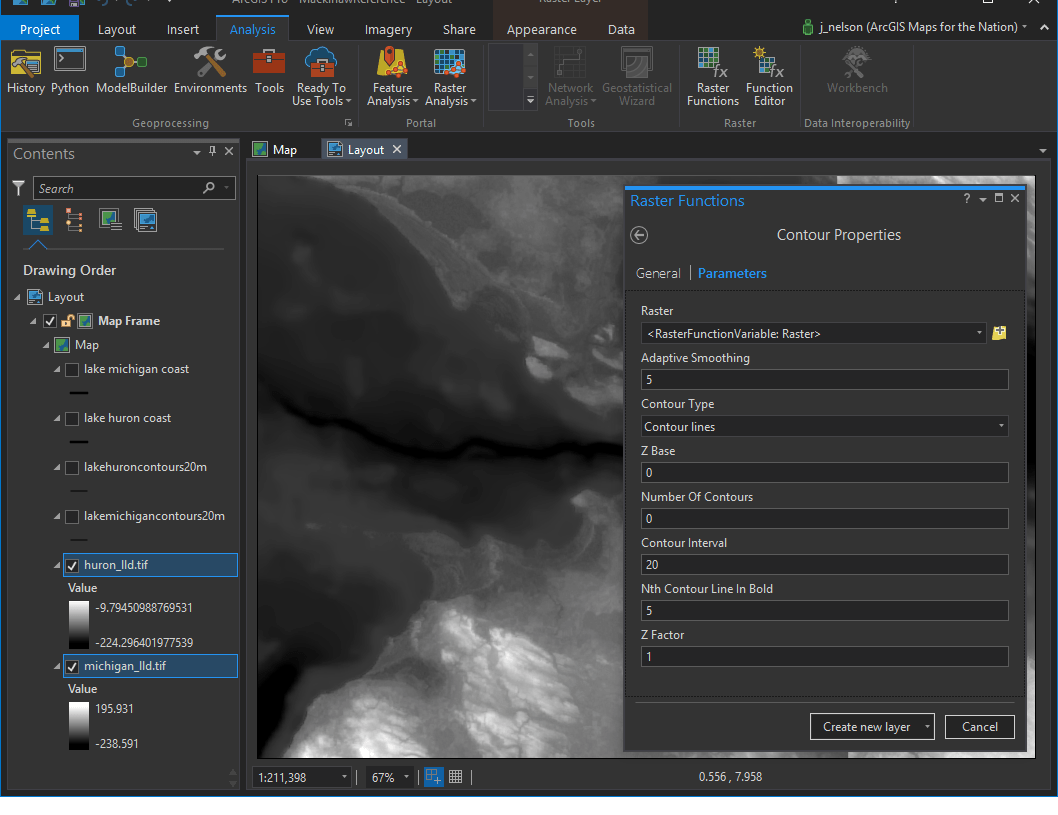 1. Hi Zand. Yes, In ArcGIS Pro, I used a tool called “Contours” to create a vector contour layer based from the digital elevation model image.