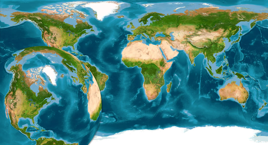 When it comes to a physical installation, timelessness is quick to come to mind. National borders tend to wander, so including cultural boundaries just courts outdatedness. Another idea might be a themed map with some rich data illustrating a global phenomenon. Temperature? Currents? Tectonic plates? Hmmmm, that might be a good fit for a thematically narrow instance, but Esri makes tools and provides data for anything that can and should be mapped. A topical thematic map would be too specific and maybe not age quite as well as a purely physical representation.